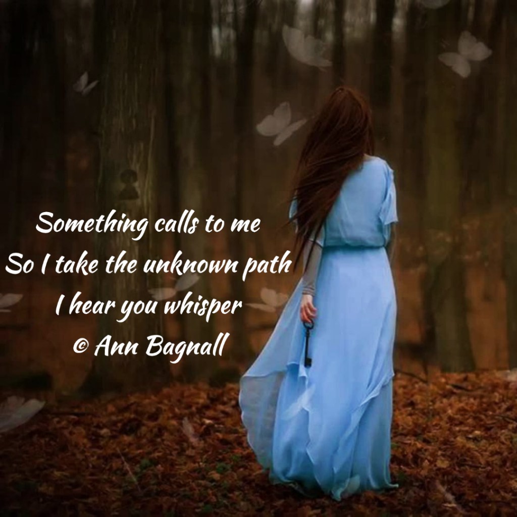 January 28, 2022September 24, 2022 Something calls to meSo I take the unknown pathI hear you whisper Share this: Click to email a link to a friend (Opens in new window) Email Tweet Click to print (Opens in new window) Print Like Loading... Related