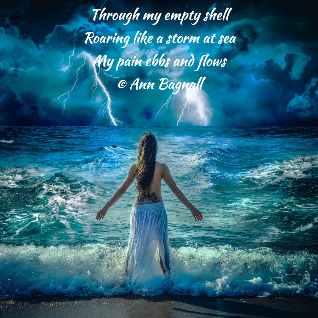 April 5, 2022March 6, 2022 Through my empty shellRoaring like a storm at seaMy pain ebbs and flows © Ann Bagnall Share this: Email a link to a friend (Opens in new window) Email Tweet Print (Opens in new window) Print Like Loading... Related