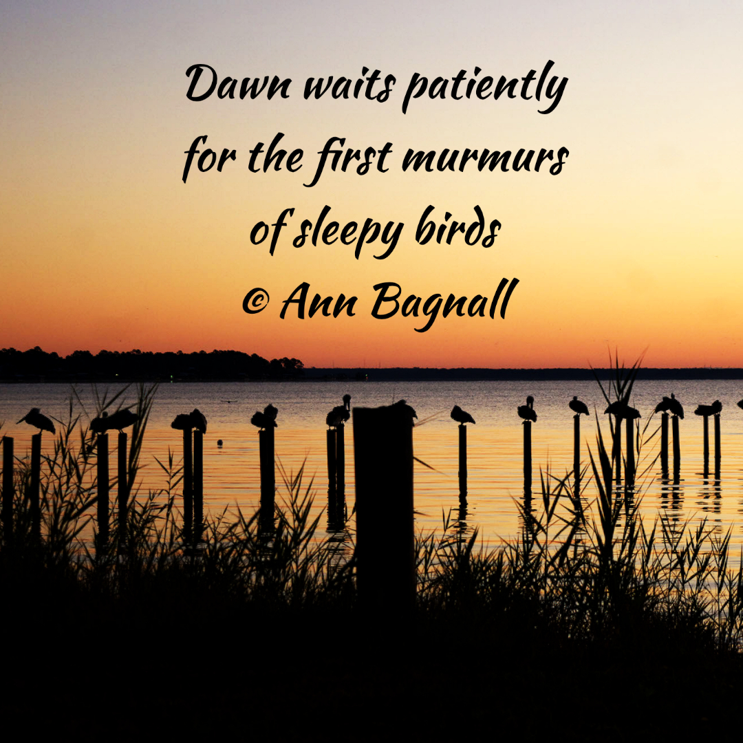 April 7, 2022March 6, 2022 Dawn waits patientlyfor the first murmursof sleepy birds© Ann Bagnall Share this: Email a link to a friend (Opens in new window) Email Tweet Print (Opens in new window) Print Like Loading... Related