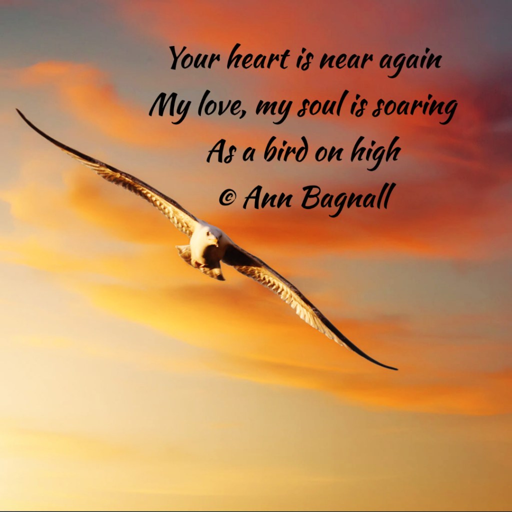 May 4, 2022April 13, 2022 Your heart is near again My love, my soul is soaring As a bird on high Share this: Click to email a link to a friend (Opens in new window) Email Tweet Click to print (Opens in new window) Print Like Loading... Related