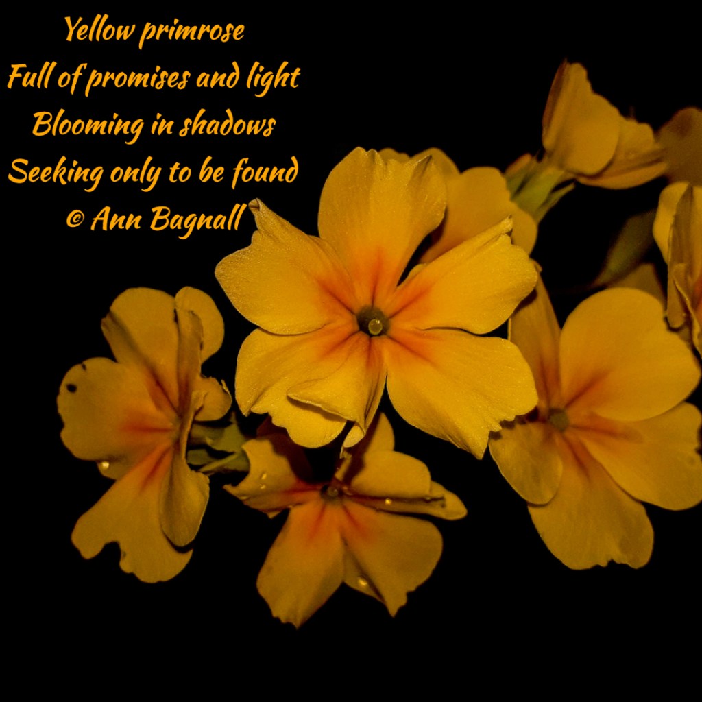 May 27, 2022April 27, 2022 Yellow primroseFull of promises and lightBlooming in shadowsSeeking only to be found© Ann Bagnall Share this: Click to email a link to a friend (Opens in new window) Email Tweet Click to print (Opens in new window) Print Like Loading... Related