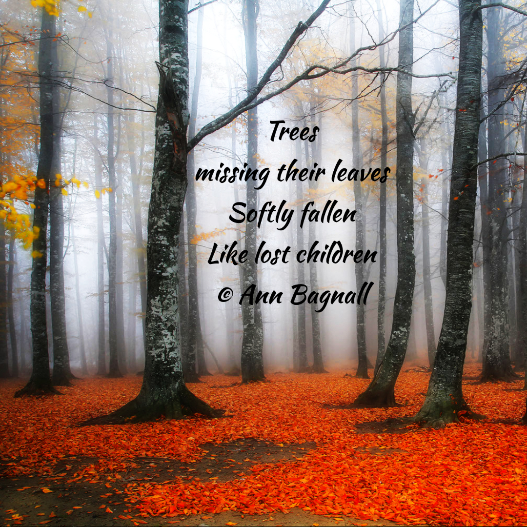 June 12, 2022May 23, 2022 Treesmissing their leavesSoftly fallenLike lost children© Ann Bagnall Share this: Email a link to a friend (Opens in new window) Email Tweet Print (Opens in new window) Print Like Loading... Related