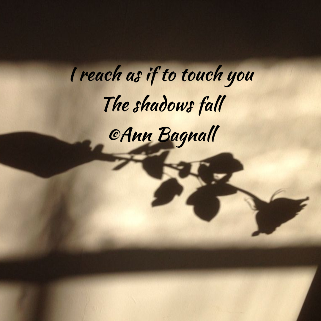 July 12, 2022July 2, 2022 I reach as if to touch youThe shadows fall©Ann Bagnall Share this: Click to email a link to a friend (Opens in new window) Email Tweet Click to print (Opens in new window) Print Like Loading... Related