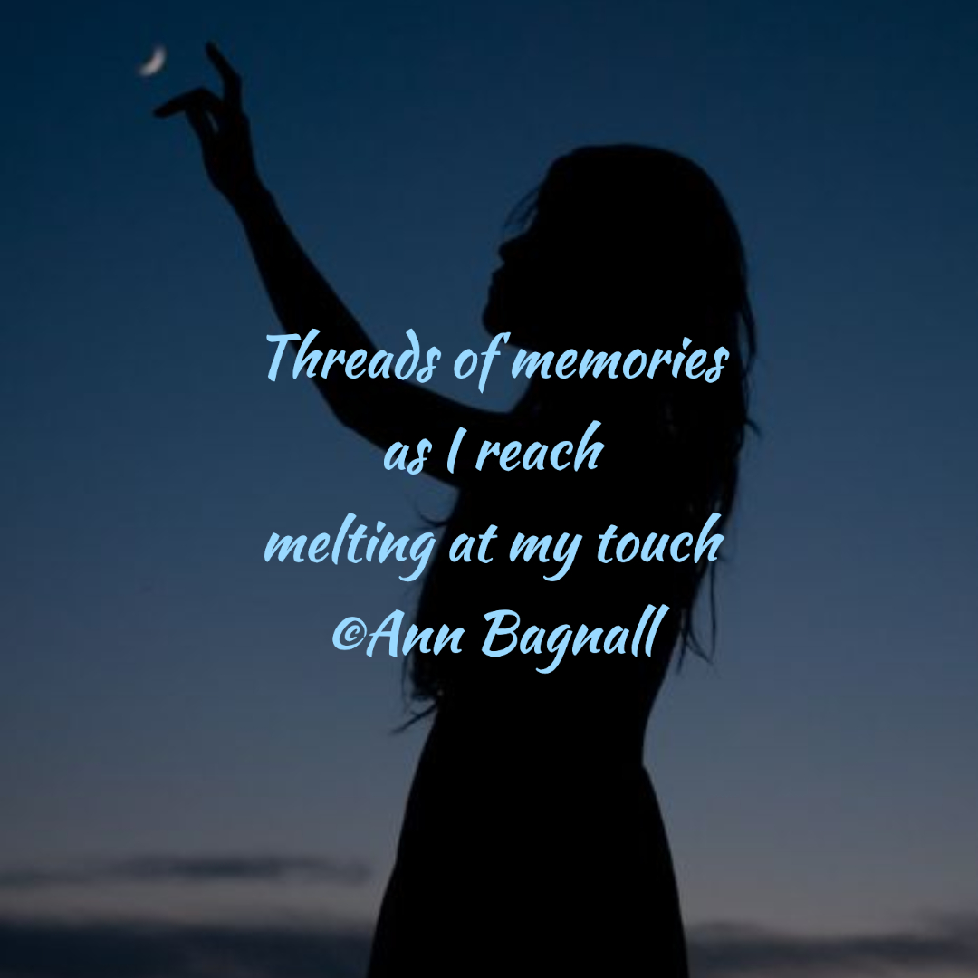 July 13, 2022July 2, 2022 Threads of memoriesas I reachmelting at my touch©Ann Bagnall Share this: Click to email a link to a friend (Opens in new window) Email Tweet Click to print (Opens in new window) Print Like Loading... Related