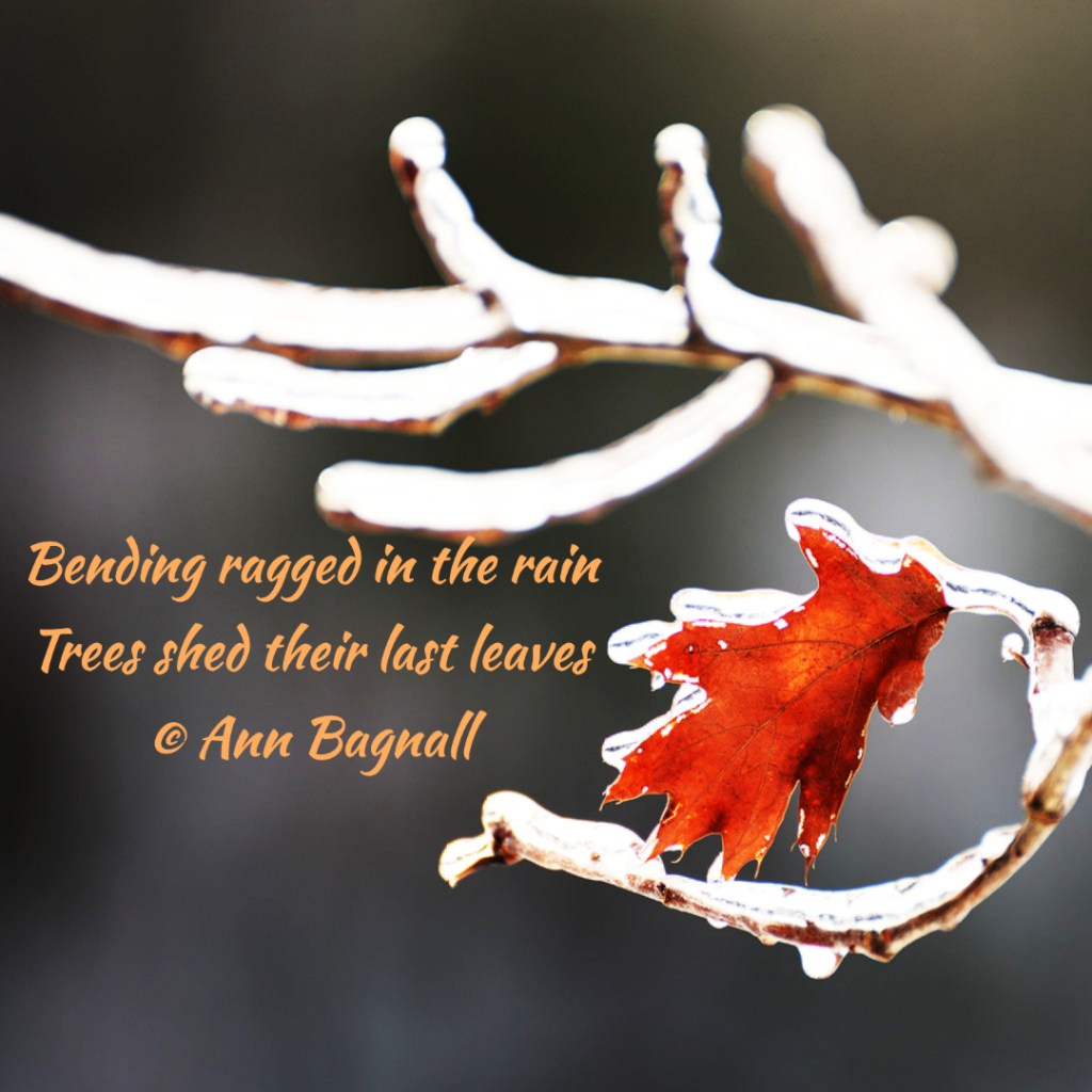 September 18, 2022August 19, 2022 Bending ragged in the rainTrees shed their last leaves© Ann Bagnall Share this: Click to email a link to a friend (Opens in new window) Email Tweet Click to print (Opens in new window) Print Like Loading... Related