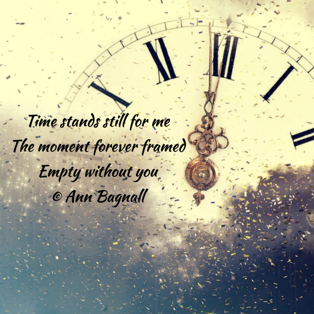 October 8, 2022September 6, 2022 Time stands still for meThe moment forever framedEmpty without you© Ann Bagnall Share this: Click to email a link to a friend (Opens in new window) Email Tweet Click to print (Opens in new window) Print Like Loading... Related