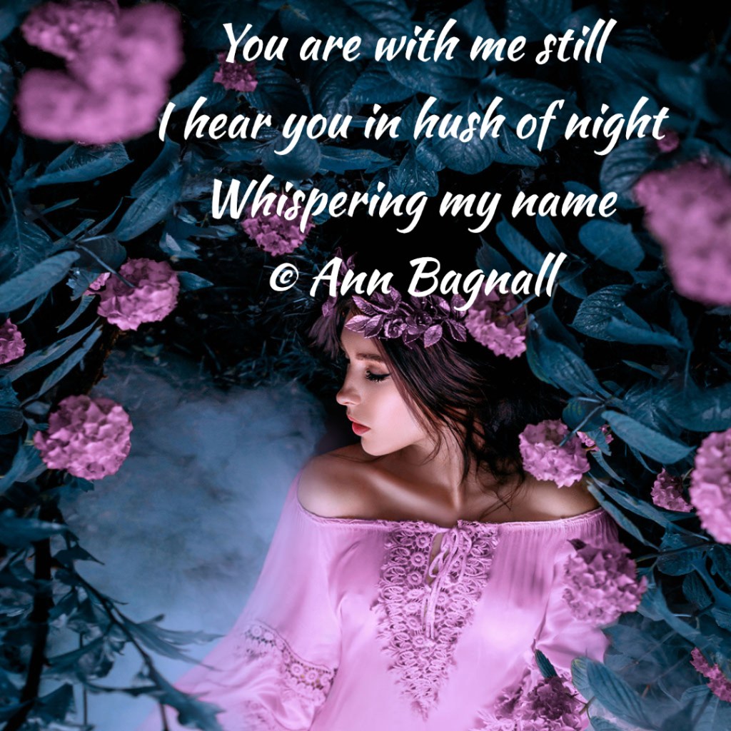 November 19, 2022November 21, 2022 You are with me stillI hear you in hush of nightWhispering my name Share this: Click to email a link to a friend (Opens in new window) Email Tweet Click to print (Opens in new window) Print Like Loading... Related
