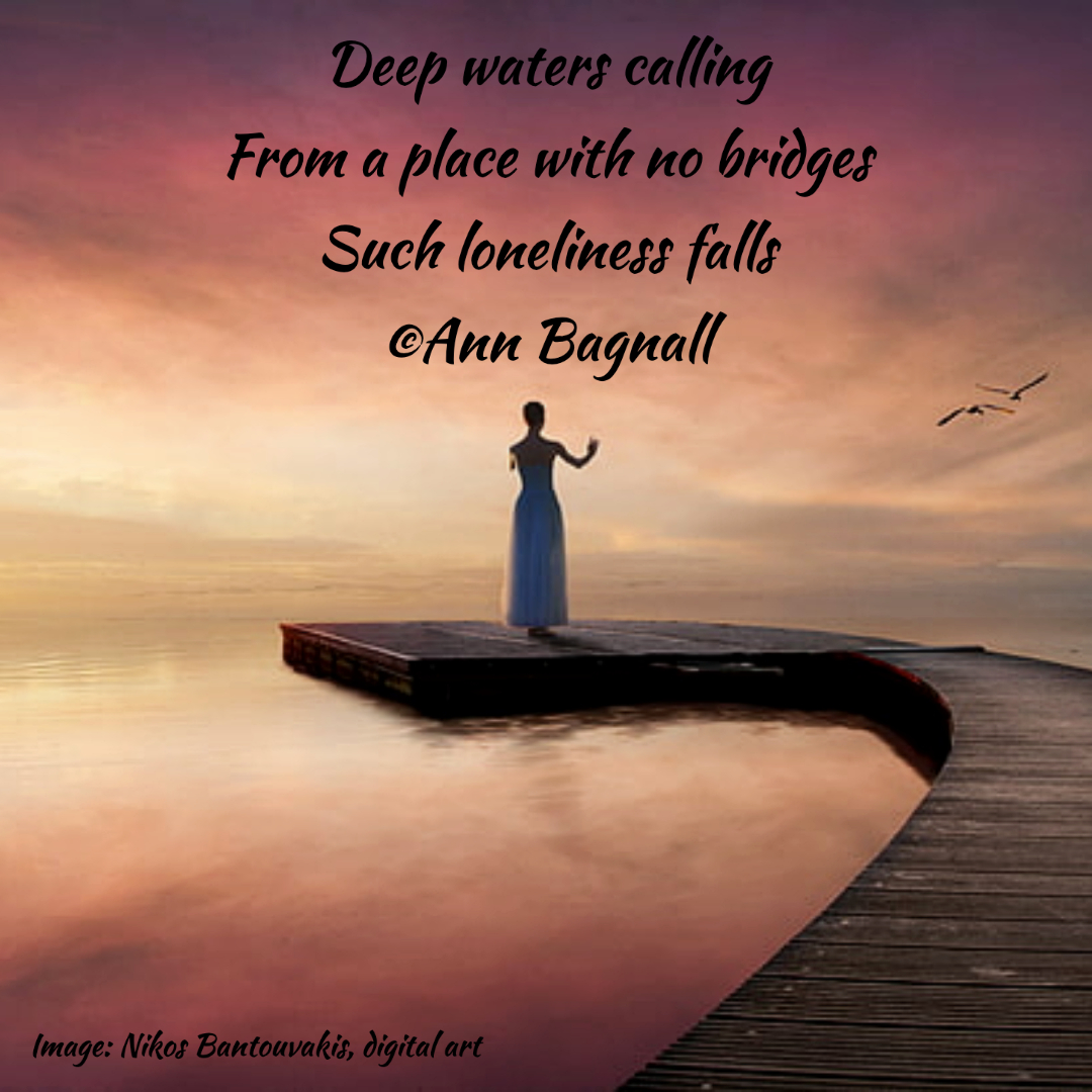 November 22, 2022November 8, 2022 Deep waters callingFrom a place with no bridgesSuch loneliness falls Share this: Click to email a link to a friend (Opens in new window) Email Tweet Click to print (Opens in new window) Print Like Loading... Related