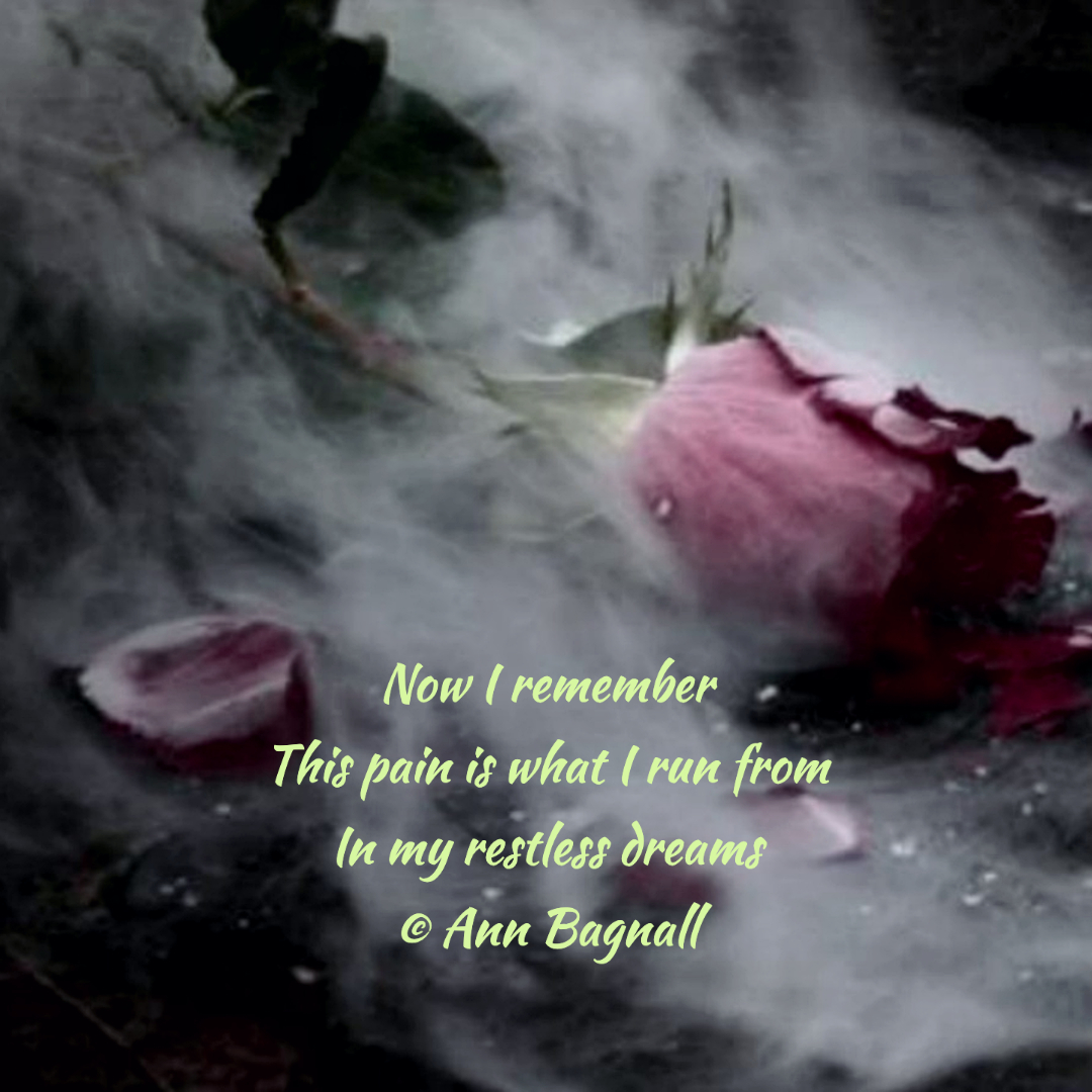 January 12, 2023November 22, 2022 Now I rememberThis pain is what I run fromIn my restless dreams© Ann Bagnall Share this: Click to email a link to a friend (Opens in new window) Email Tweet Click to print (Opens in new window) Print Like Loading... Related