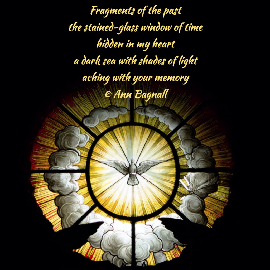March 4, 2023February 6, 2023 Fragments of the pastthe stained-glass window of timehidden in my hearta dark sea with shades of lightaching with your memory© Ann Bagnall Share this: Email a link to a friend (Opens in new window) Email Tweet Print (Opens in new window) Print Like Loading... Related