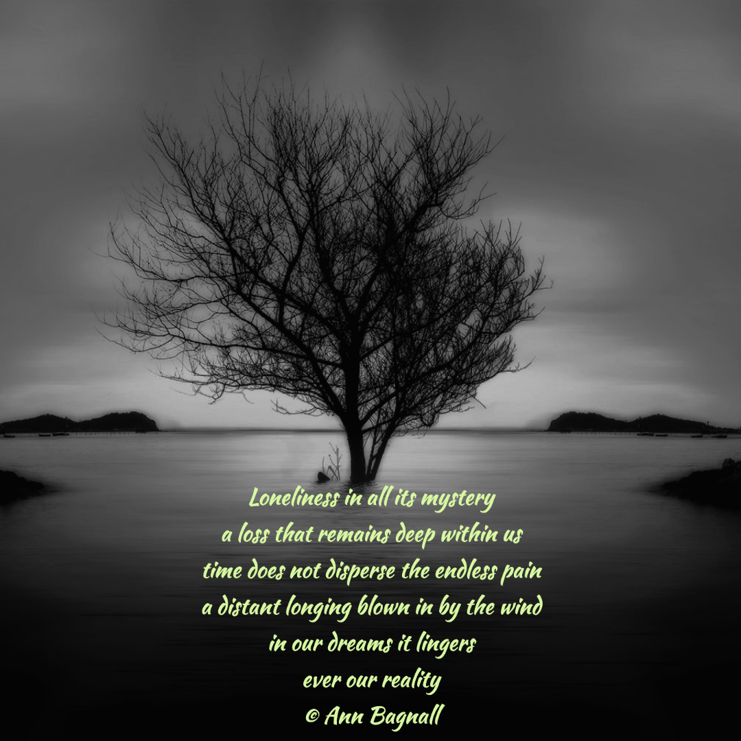 March 29, 2023February 9, 2023 Loneliness in all its mysterya loss that remains deep within ustime does not disperse the endless paina distant longing blown in by the windin our dreams it lingersever our reality© Ann Bagnall Share this: Click to email a link to a friend (Opens in new window) Email Tweet Click to print (Opens in new window) Print Like Loading... Related