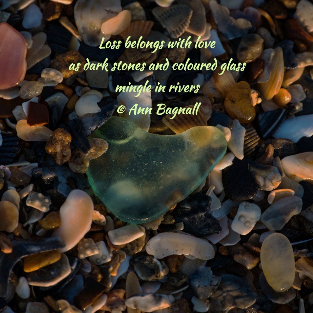 April 6, 2023February 14, 2023 Loss belongs with loveas dark stones and coloured glassmingle in rivers© Ann Bagnall Share this: Click to email a link to a friend (Opens in new window) Email Tweet Click to print (Opens in new window) Print Like Loading... Related