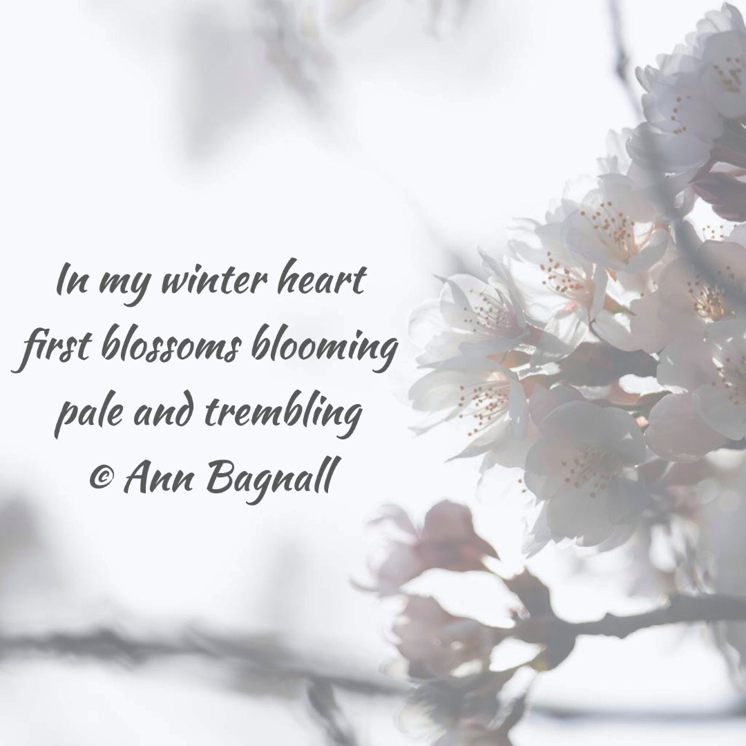 April 9, 2023April 7, 2023 In my winter heartfirst blossoms bloomingpale and trembling© Ann Bagnall Share this: Click to email a link to a friend (Opens in new window) Email Tweet Click to print (Opens in new window) Print Like Loading... Related