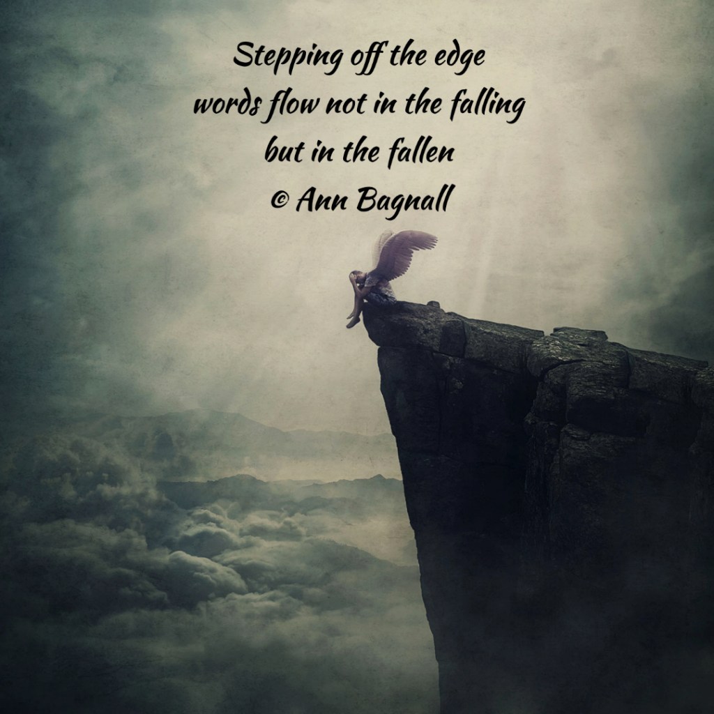 April 22, 2023February 14, 2023 Stepping off the edgewords flow not in the fallingbut in the fallen© Ann Bagnall Share this: Email a link to a friend (Opens in new window) Email Tweet Print (Opens in new window) Print Like Loading... Related