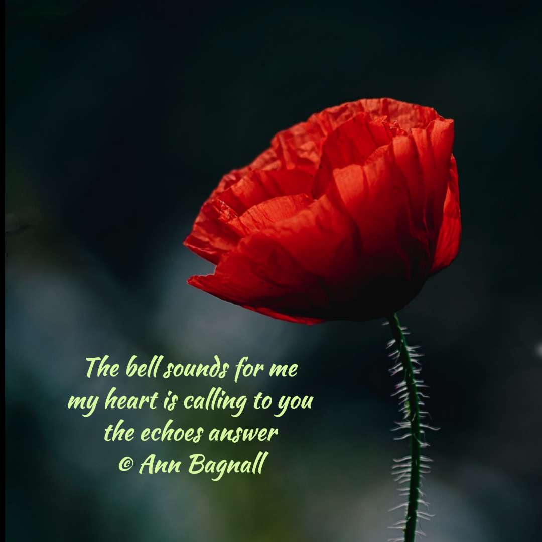 May 27, 2023March 5, 2023 The bell sounds for me my heart is calling to you the echoes answer © Ann Bagnall Share this: Click to email a link to a friend (Opens in new window) Email Tweet Click to print (Opens in new window) Print Like Loading... Related