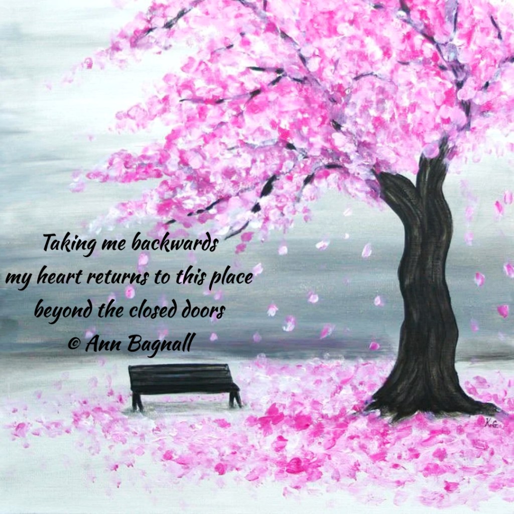 July 5, 2023June 17, 2023 Taking me backwardsmy heart returns to this placebeyond the closed doors© Ann Bagnall Share this: Email a link to a friend (Opens in new window) Email Tweet Print (Opens in new window) Print Like Loading... Related