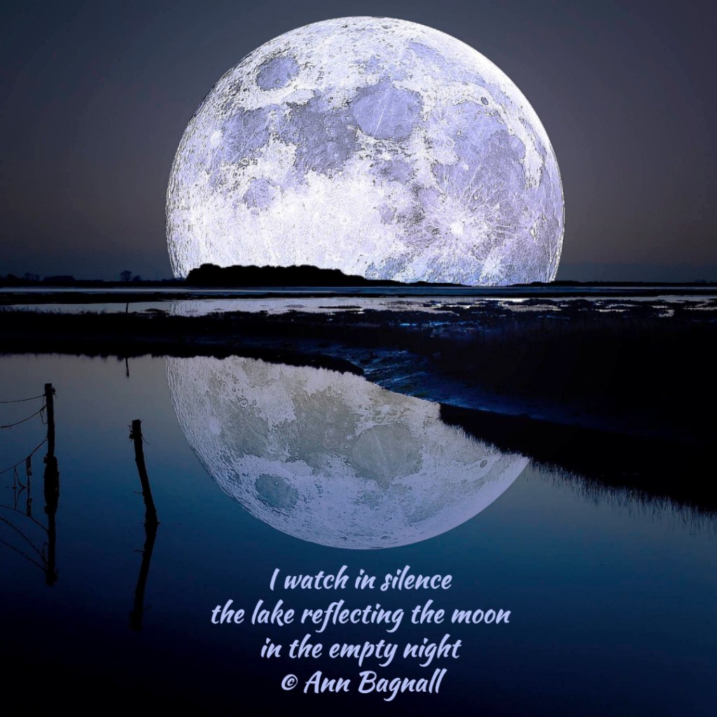August 15, 2023August 6, 2023 I watch in silencethe lake reflecting the moonin the empty night© Ann Bagnall Share this: Click to email a link to a friend (Opens in new window) Email Tweet Click to print (Opens in new window) Print Like Loading... Related