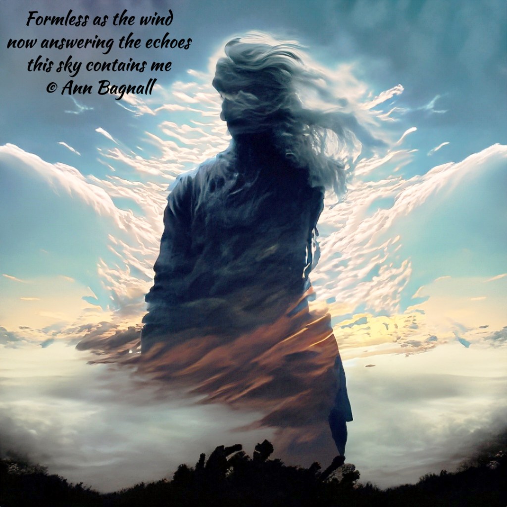 August 26, 2023August 18, 2023 Formless as the windnow answering the echoesthis sky contains me© Ann Bagnall Share this: Click to email a link to a friend (Opens in new window) Email Tweet Click to print (Opens in new window) Print Like Loading... Related