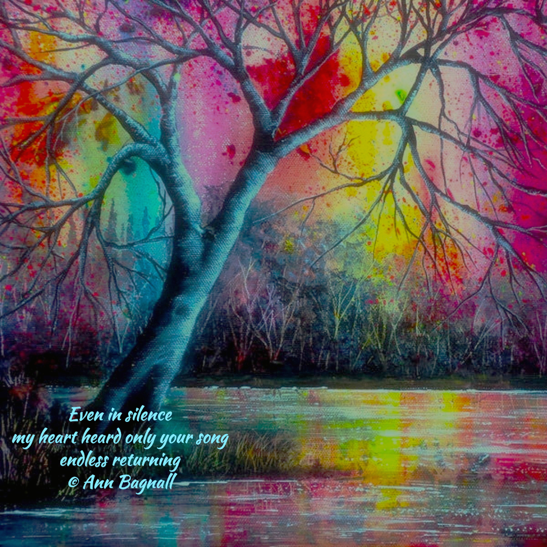 August 28, 2023August 18, 2023 Even in silencemy heart heard only your songendless returning© Ann Bagnall Share this: Email a link to a friend (Opens in new window) Email Tweet Print (Opens in new window) Print Like Loading... Related