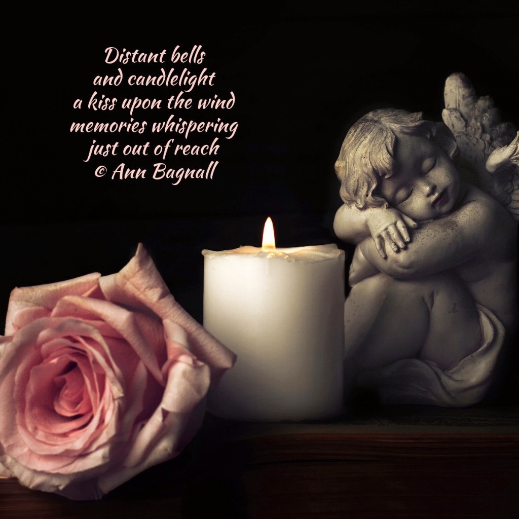 November 11, 2023September 22, 2023 Distant bellsand candlelighta kiss upon the windmemories whisperingjust out of reach © Ann Bagnall Share this: Click to email a link to a friend (Opens in new window) Email Tweet Click to print (Opens in new window) Print Like Loading... Related