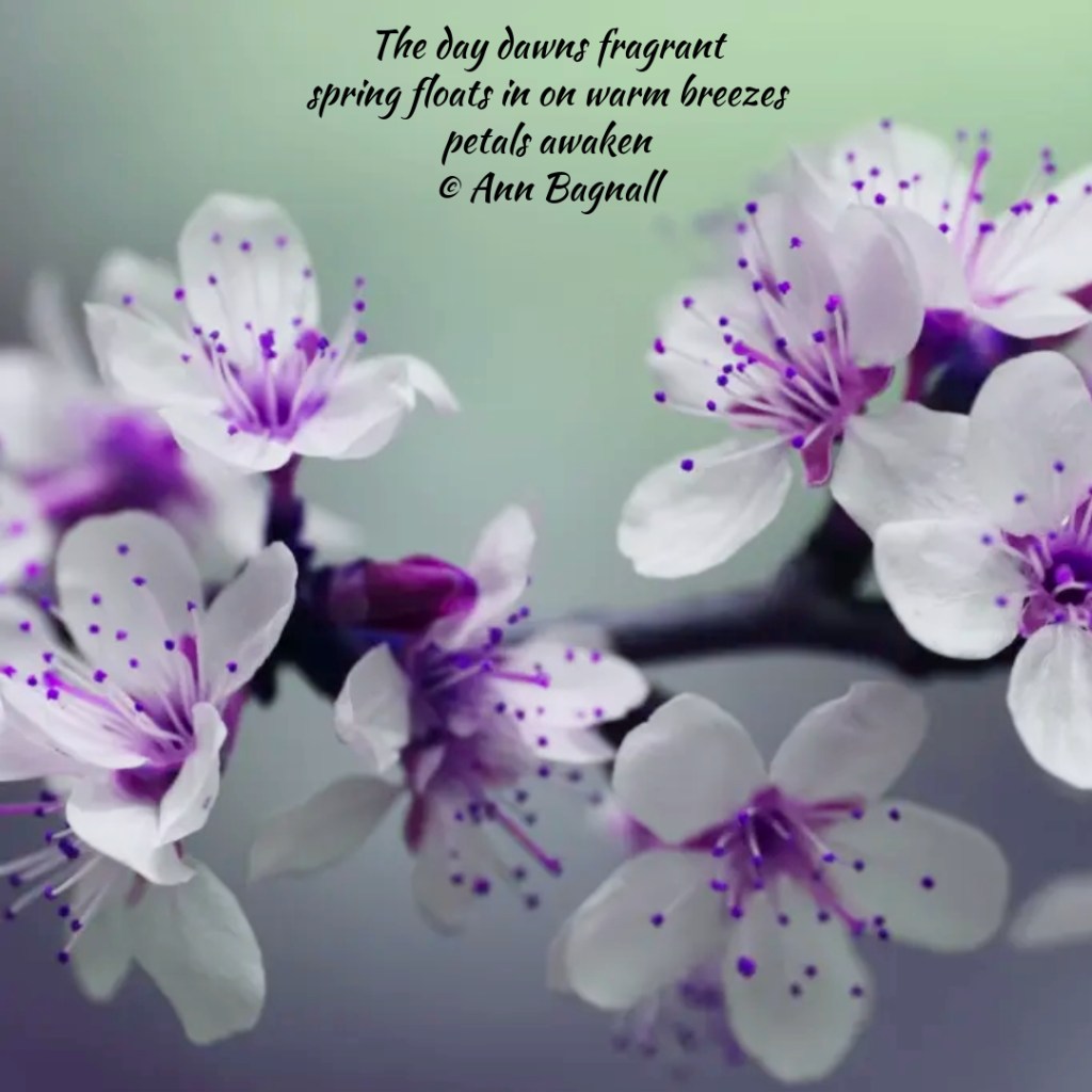 February 23, 2024December 27, 2023 The day dawns fragrantspring floats in on warm breezespetals awaken© Ann Bagnall Share this: Click to email a link to a friend (Opens in new window) Email Tweet Click to print (Opens in new window) Print Like Loading... Related