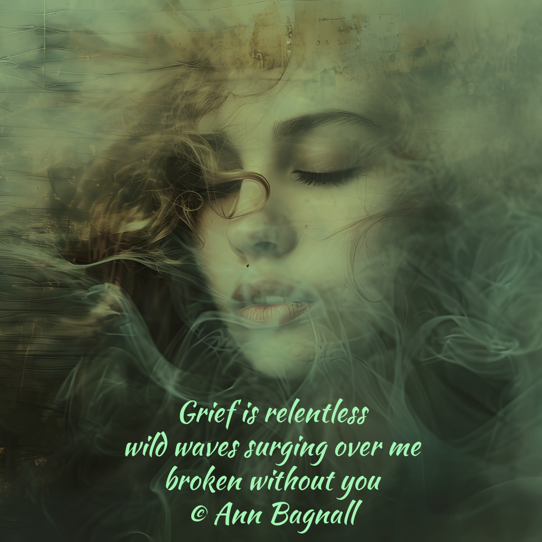 July 5, 2024January 4, 2025 Grief is relentless wild waves surging over me broken without you © Ann Bagnall Share this: Click to email a link to a friend (Opens in new window) Email Tweet Click to print (Opens in new window) Print Like Loading... Related