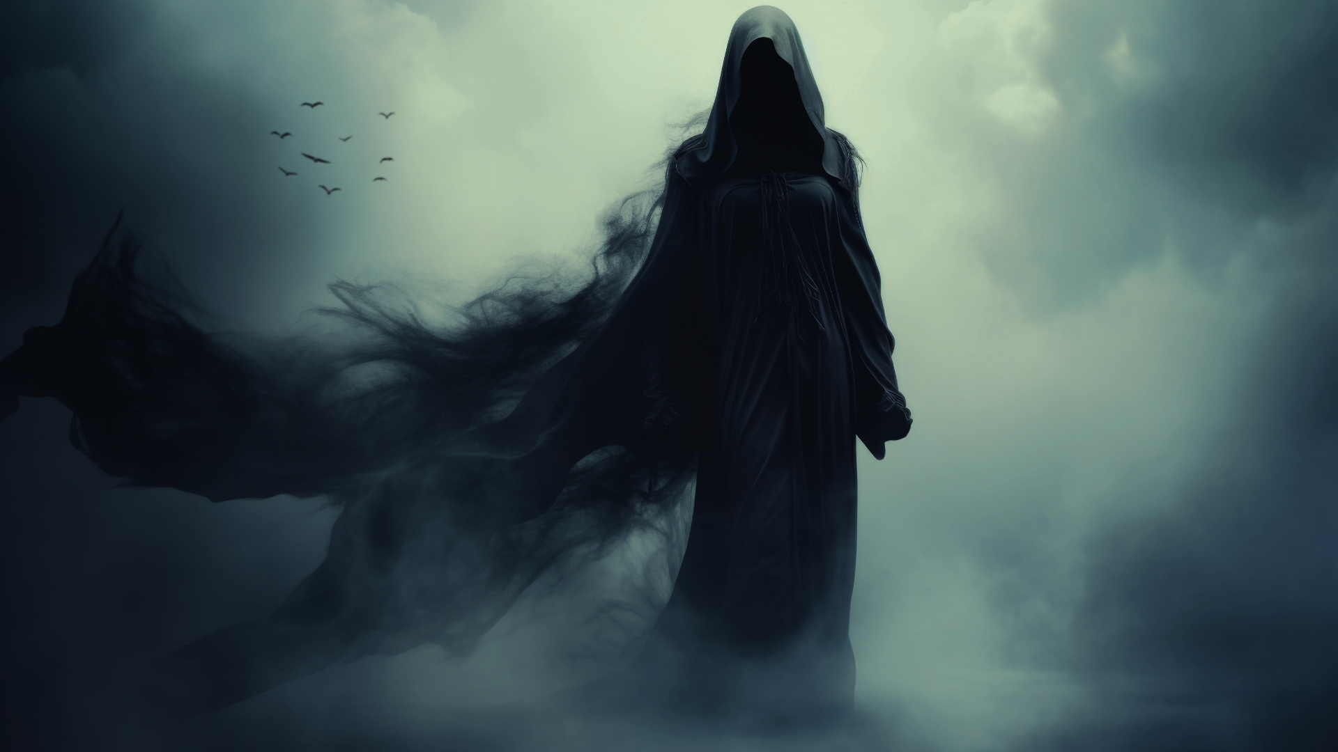 When twilight drapes the earth in ghostly hue