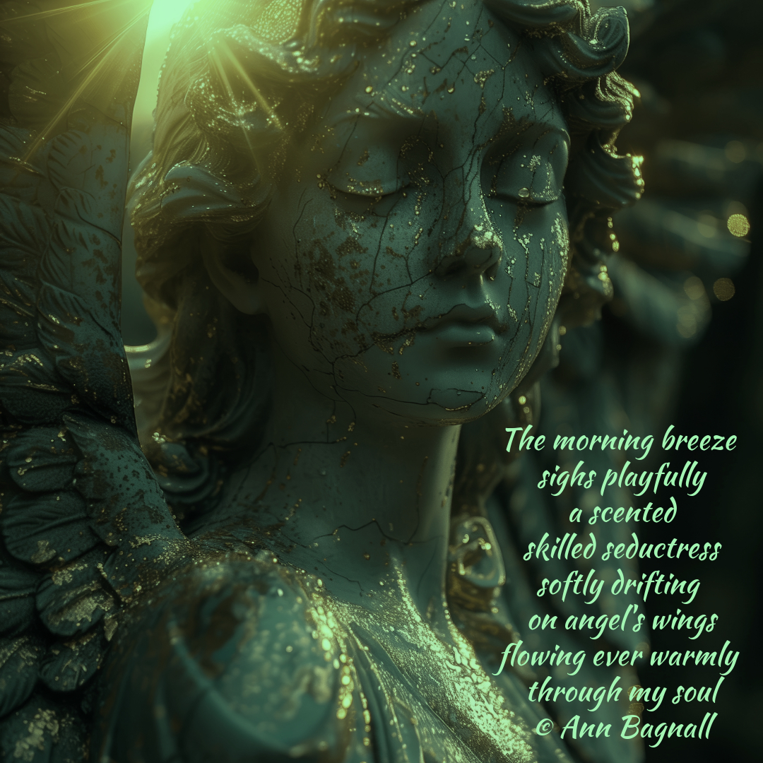 September 2, 2024August 30, 2024 The morning breeze sighs playfully a scented skilled seductress softly drifting on angel’s wings flowing ever warmly through my soul © Ann Bagnall Share this: Email a link to a friend (Opens in new window) Email Tweet Print (Opens in new window) Print Like Loading... Related