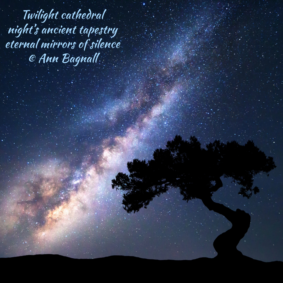 October 13, 2024September 1, 2024 Twilight cathedral night’s ancient tapestry eternal mirrors of silence © Ann Bagnall Share this: Click to email a link to a friend (Opens in new window) Email Tweet Click to print (Opens in new window) Print Like Loading... Related