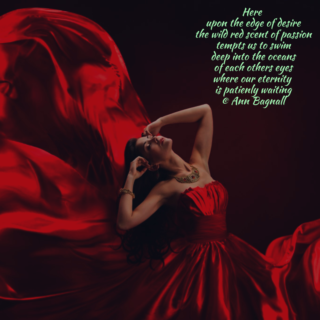 February 28, 2025January 3, 2026 Here upon the edge of desire the wild red scent of passion tempts us to swim deep into the oceans of each others eyes where our eternity is patiently waiting © Ann Bagnall Share this: Click to email a link to a friend (Opens in new window) Email Tweet Click to print (Opens in new window) Print Like Loading... Related