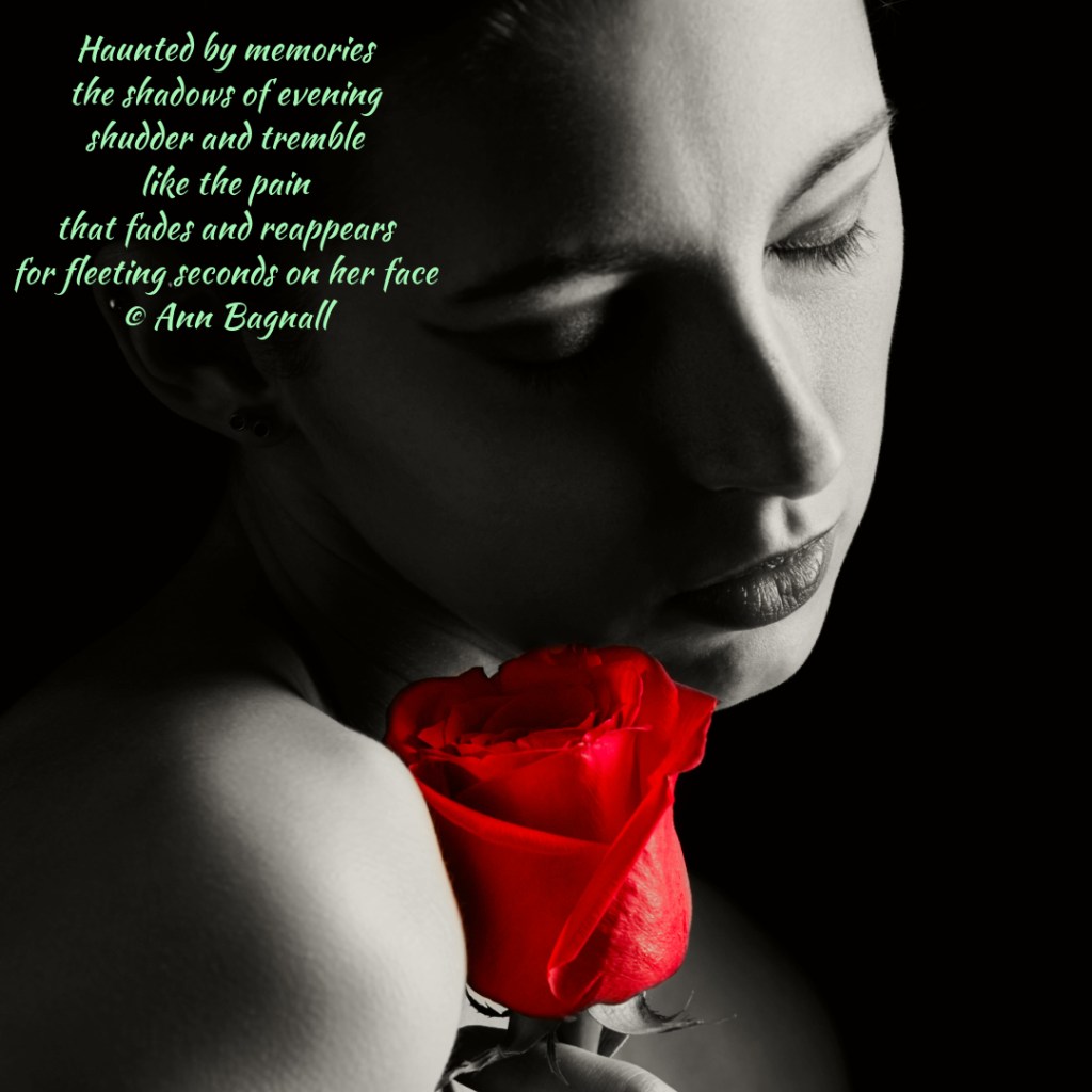 March 2, 2025February 28, 2025 Haunted by memories the shadows of evening shudder and tremble like the pain that fades and reappears for fleeting seconds on her face © Ann Bagnall Share this: Click to email a link to a friend (Opens in new window) Email Tweet Click to print (Opens in new window) Print Like Loading... Related