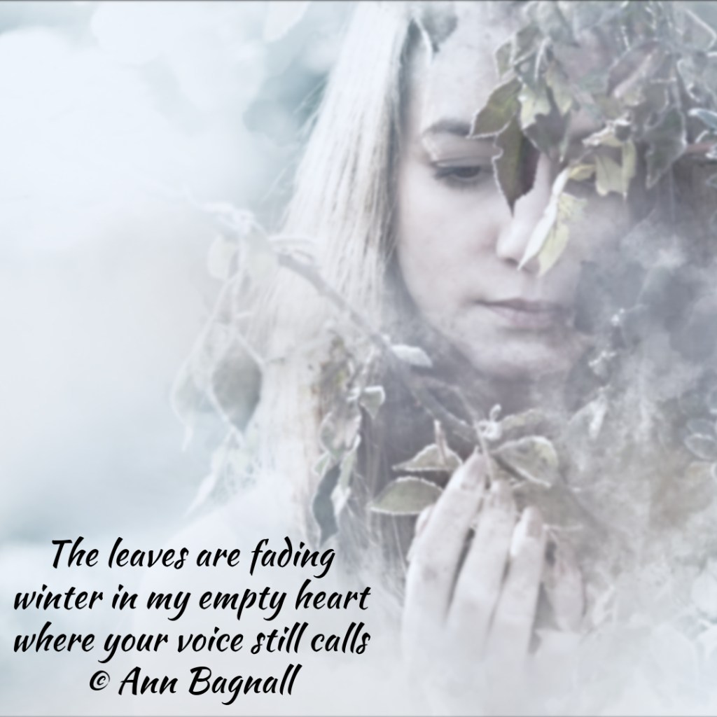March 9, 2025February 28, 2025 The leaves are fading winter in my empty heart where your voice still calls © Ann Bagnall Share this: Click to email a link to a friend (Opens in new window) Email Tweet Click to print (Opens in new window) Print Like Loading... Related