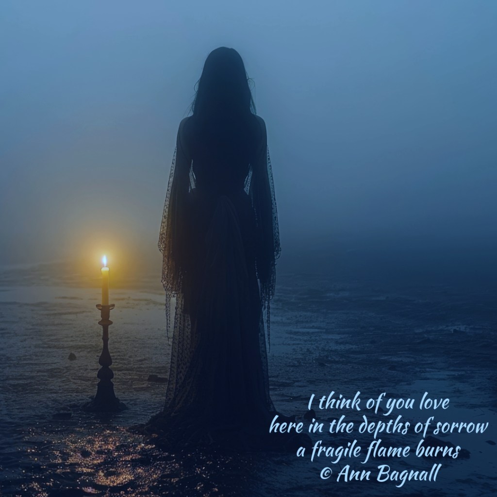 March 18, 2025February 28, 2025 I think of you love here in the depths of sorrow a fragile flame burns © Ann Bagnall Share this: Click to email a link to a friend (Opens in new window) Email Tweet Click to print (Opens in new window) Print Like Loading... Related
