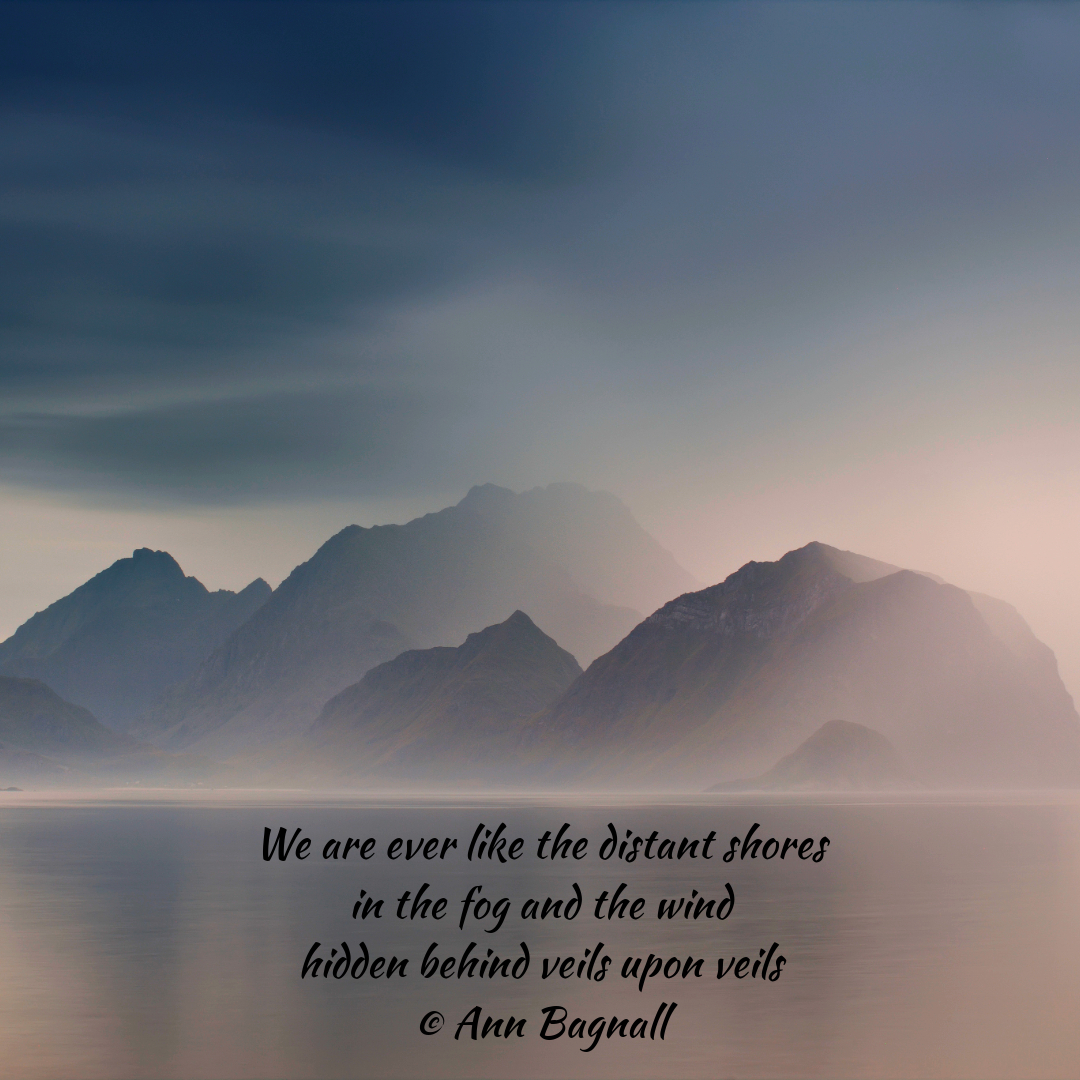 April 30, 2025February 28, 2025 We are ever like the distant shores in the fog and the wind hidden behind veils upon veils © Ann Bagnall Share this: Click to email a link to a friend (Opens in new window) Email Tweet Click to print (Opens in new window) Print Like Loading... Related