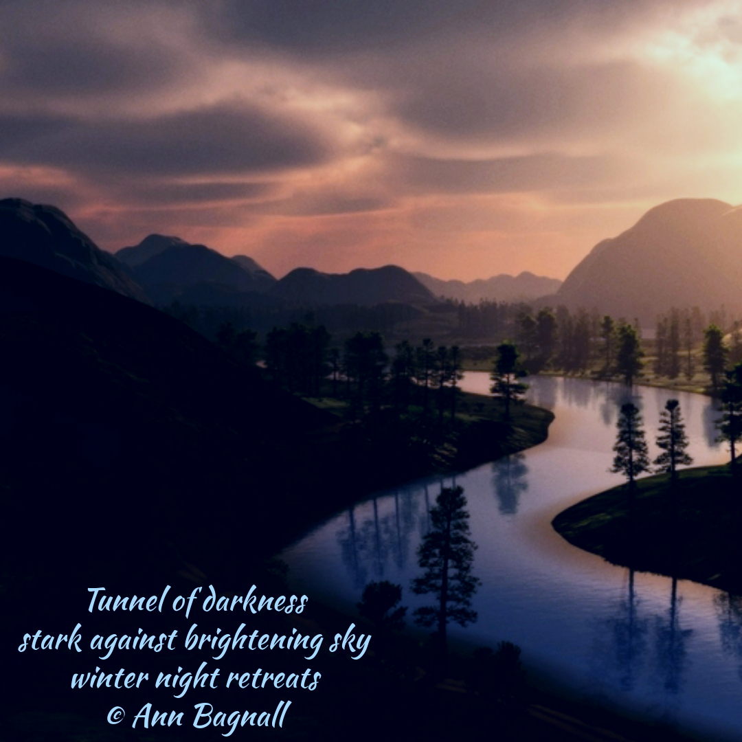 May 13, 2025February 28, 2025 Tunnel of darkness stark against brightening sky winter night retreats © Ann Bagnall Share this: Click to email a link to a friend (Opens in new window) Email Tweet Click to print (Opens in new window) Print Like Loading... Related