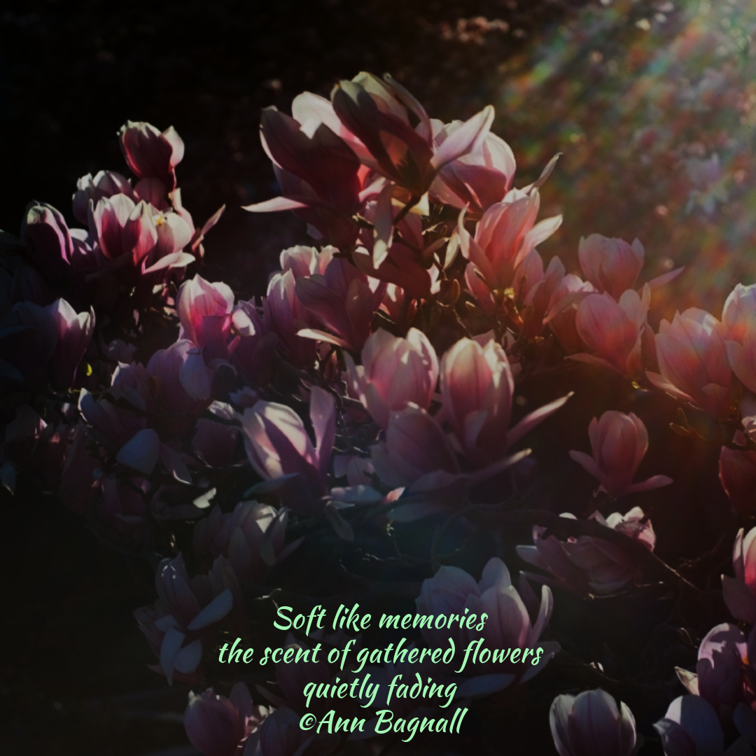 June 29, 2025June 1, 2025 Soft like memories the scent of gathered flowers quietly fading ©Ann Bagnall Share this: Click to email a link to a friend (Opens in new window) Email Tweet Click to print (Opens in new window) Print Like Loading... Related