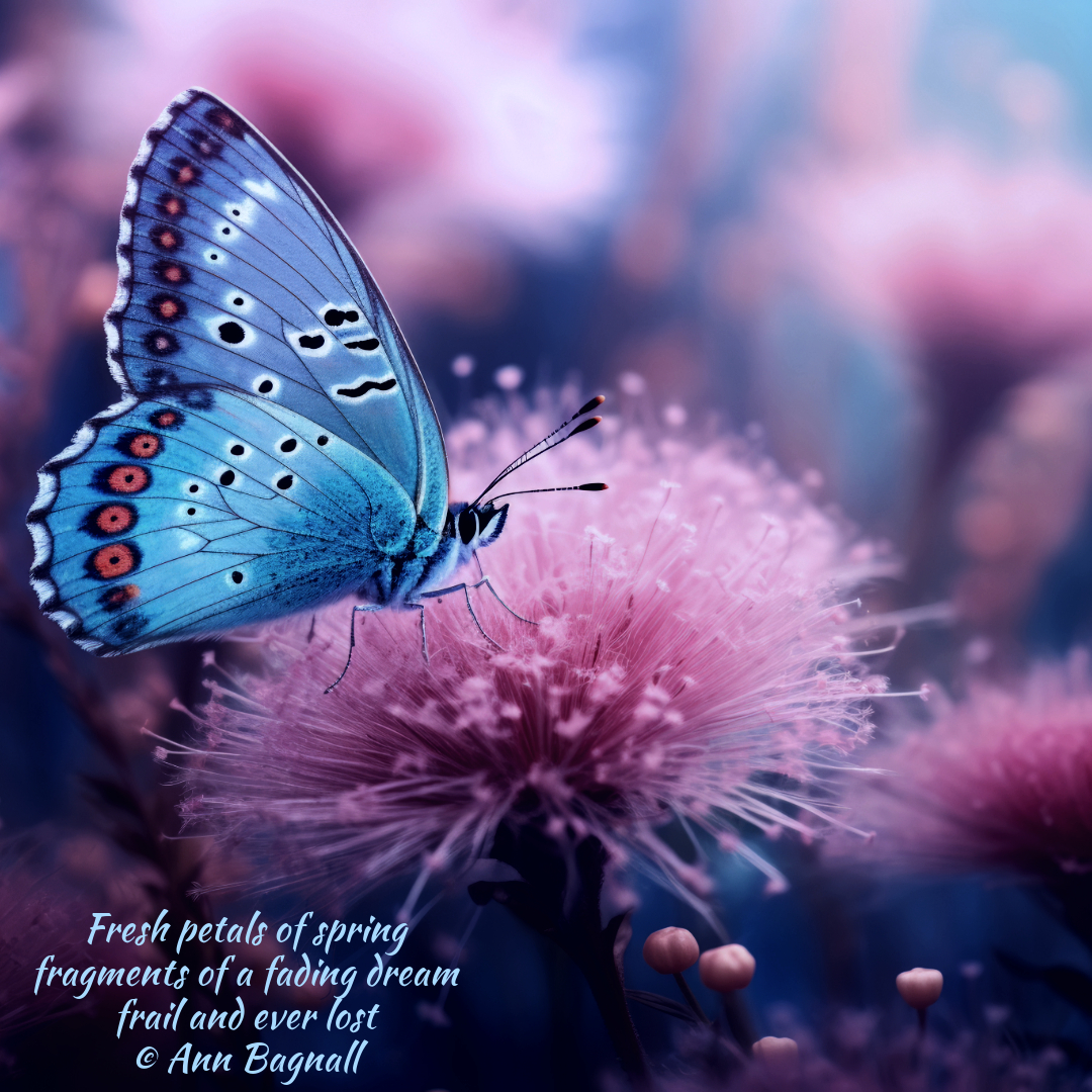 August 11, 2025February 28, 2025 Fresh petals of spring fragments of a fading dream frail and ever lost © Ann Bagnall Share this: Click to email a link to a friend (Opens in new window) Email Tweet Click to print (Opens in new window) Print Like Loading... Related