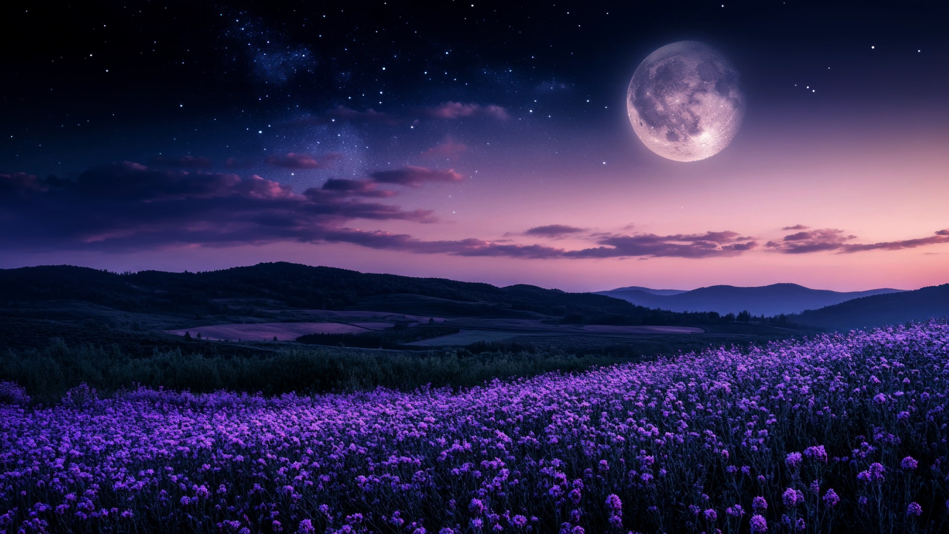 carpets of blossoms, clustered and fragrant in the growing dark