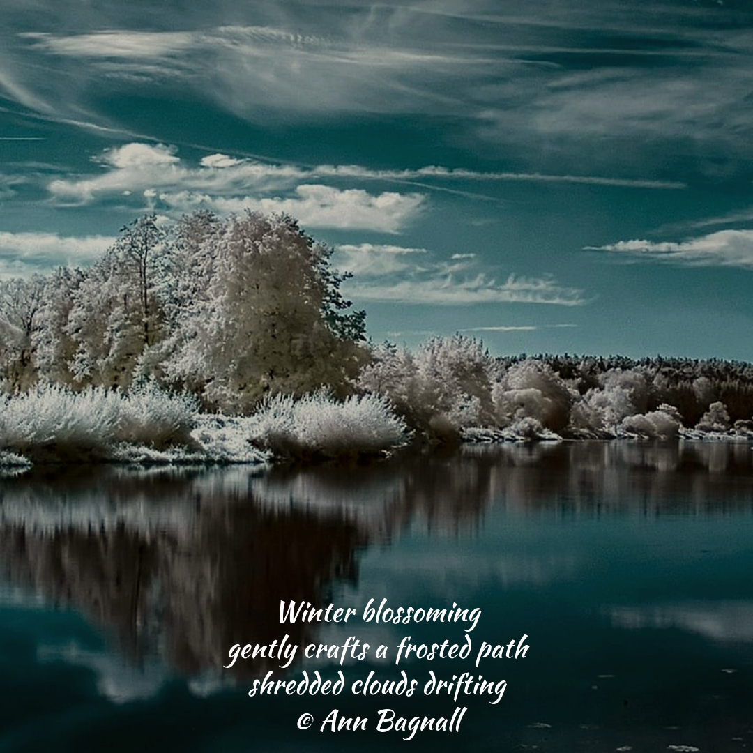 September 4, 2025April 19, 2025 Winter blossoming gently crafts a frosted path shredded clouds drifting © Ann Bagnall Share this: Click to email a link to a friend (Opens in new window) Email Tweet Click to print (Opens in new window) Print Like Loading... Related