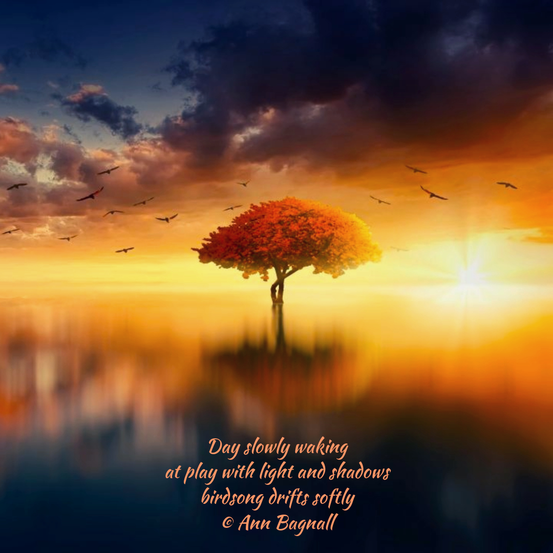 November 21, 2025October 3, 2025 Day slowly waking at play with light and shadows birdsong drifts softly © Ann Bagnall Share this: Click to email a link to a friend (Opens in new window) Email Tweet Click to print (Opens in new window) Print Like Loading... Related