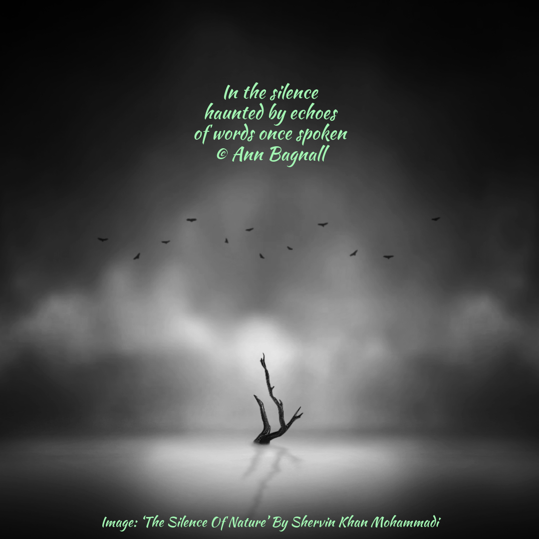 November 23, 2025October 3, 2025 In the silence haunted by echoes of words once spoken © Ann Bagnall Share this: Click to email a link to a friend (Opens in new window) Email Tweet Click to print (Opens in new window) Print Like Loading... Related