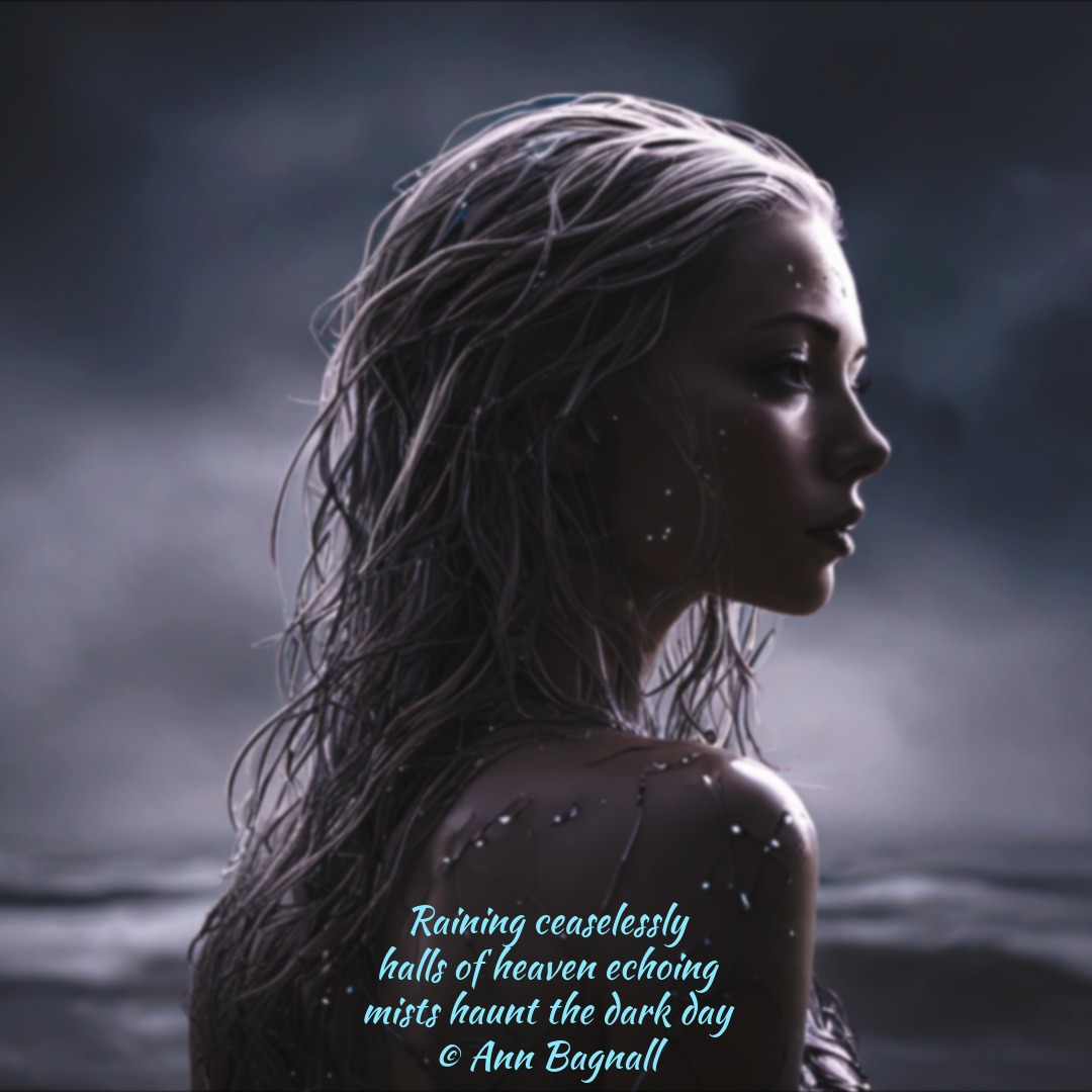 February 25, 2026February 1, 2026 Raining ceaselessly halls of heaven echoing mists haunt the dark day © Ann Bagnall Share this: Email a link to a friend (Opens in new window) Email Tweet Print (Opens in new window) Print Like Loading... Related